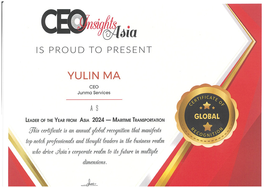 【人物简介】马玉林,Junma Services Pte Ltd的创始人兼董事总经理,在船舶发动机技术领域深耕超过四十年的行业专家。上世纪90年代,他放弃公职赴海外顶级船企积累深厚经验,于2005年创立“骏马服务”(Junma Services),以“客户至上”为核心价值,坚持技术深耕与“物超所值”的服务承诺,带领企业推出活塞环纳米镀层技术、专家眼镜远程支持系统、JEOS发动机性能智能优化平台等创新方案,助力客户实现燃油节约、合规运营与效率提升。马玉林注重以人为本的领导理念,展现深厚的社会责任感。他致力于通过技术创新赋能客户利益最大化,并以诚信、韧性和远见,持续推动航运业的可持续发展。