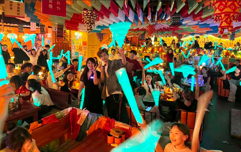 与传统酒馆被动等待顾客消费不同,三旬酒馆更像是一个“攒局者”。每天,店内都会策划各式各样的游戏——重返童年的怀旧游戏、促进社交的破冰游戏、热闹欢快的集体游戏……在不同时间段,工作人员会带领全场顾客一起参与,让原本互不相识的一桌桌客人最终成为朋友。这种独特的互动模式,打破了传统酒馆的冷漠氛围,创造出“旬里旬气”的独特文化——顾客之间形成默契的友谊,墙上的照片与许愿牌见证着无数美好的相遇。