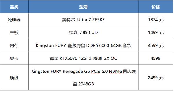英特尔 酷睿Ultra7 265KF处理器是目前高端处理器的代表之一,拥有8大核12小核20线程,大核频率3.9-5.5GHz,小核频率3.3-4.6GHz,二级缓存36MB,三级缓存30MB。主板选择了技嘉 Z890 UD,这款主板采用12+1+2供电模组,可以支持更高阶的酷睿Ultra9处理器,四条内存插槽支持最大256GB DDR5 8800+内存,4组M.2插槽,其中1组还支持PCIe 5.0x4模式,未来可升级性提供了无限可能!