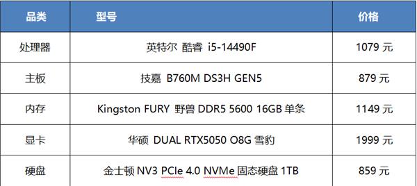 视频剪辑注重处理器的核多线程,千元处理器中英特尔酷睿 i5-14490F的性价比无疑会更高一些,6大核4小核16线程,大核频率2.5-4.9GHz,小核频率2.1-3.7GHz,二级缓存9.5MB,三级缓存24MB,基准功耗只有65W,加速功耗148W,性能比经典的i5-12600KF更强一些,功耗却更低一些。匹配的主板选择了技嘉 B760M DS3H GEN5,这款主板拥有6+2+1供电,并拥有4条DDR5内存插槽,2组M.2 PCIe 4.0接口,更多的内存插槽可以为后续升级做足准备。